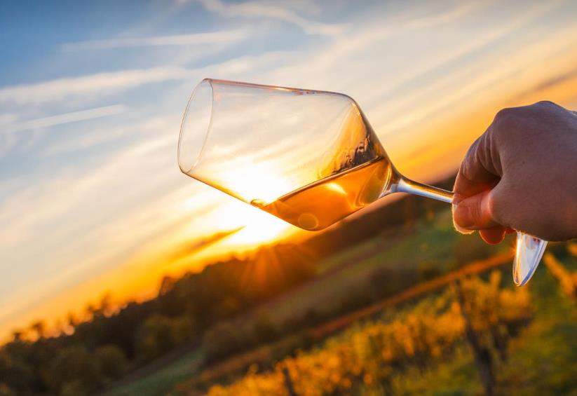 Mit Freunden. Mit Blick auf den Sonnenuntergang. Mit einem Glas Naturwein in der Hand.